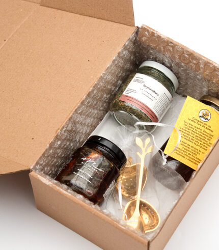La Caja Esencia Sagrada ha sido creada para quienes buscan reconectar con la tranquilidad, la intención y el bienestar interior. Incluye un quemador de palo santo ideal para limpiar energías y elevar el ambiente, acompañado de hierbas aromáticas que potencian la sensación de calma y equilibrio. Un portavasos artesanal invita a disfrutar con consciencia cada bebida, mientras que el infusor permite preparar mezclas reconfortantes para acompañar tus rituales diarios.
